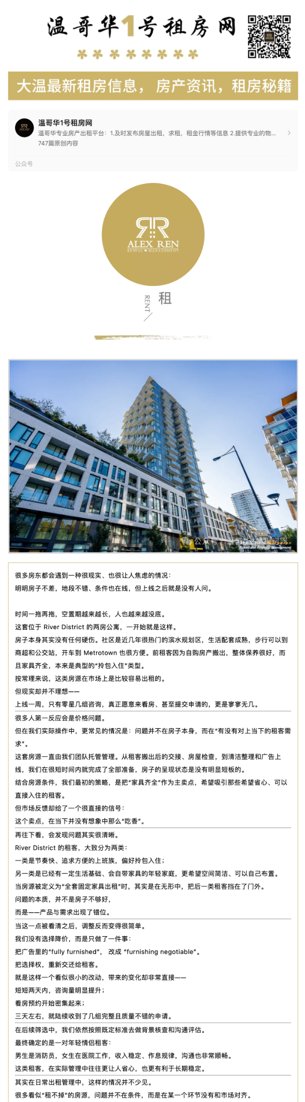 出租案例 | 好房子为什么租不掉?这套River District给出真实答